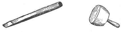 The Master further instructs the candidate in the signs of the penalties of this Degree (see Figs. 19, 20, 21, and 22), and then presents, or points out to him on the chart, the working-tools of a Mark Master Mason, viz.: a mallet and chisel, the use of which he explains as follows:–